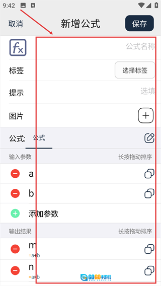 3、填写公式名称、标签和参数等信息。
