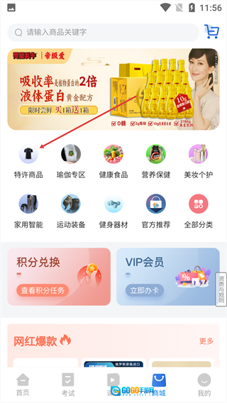 5、点击【商城】选项,就能在线选购各类健身用品、健康食品等商品。