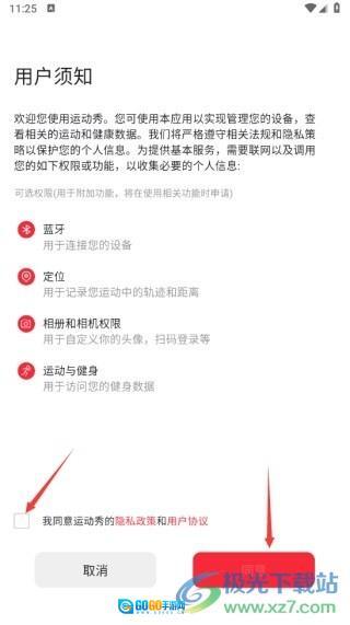 进入运动秀界面后,需先阅读并查看用户须知,只有同意相关内容,方可进入到下一个界面。