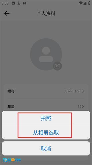 4、当打开头像更换的弹窗后,你可以通过选择【拍照】或者【从相册选取】这两种方式来更换头像,选定相应内容后就能完成头像的更新流程。