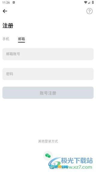 3、注册账号共有三种方式,分别是手机注册、邮箱注册,以及最便捷的微信注册登录;其中手机注册需输入手机号以获取验证码。