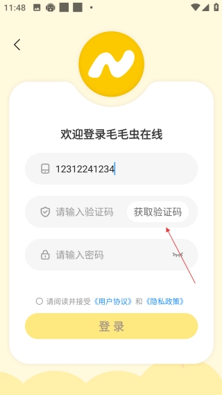3、输入手机号码后,点击【获取验证码】按钮,以获取相应的验证码。