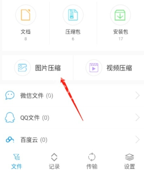 1、打开并进入文件界面。这里以修改图片压缩文件的后缀为例,点击“图片压缩”选项。