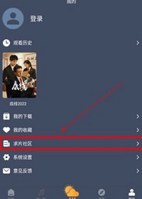 2、进入“我的”界面后,向下滑动页面,点击【求片社区】。