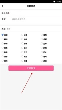 3、进入求片社区页面后,找到右上角的【我要求片】按钮并点击。