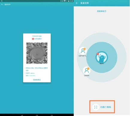 如果有多台设备需要同时进行发送或接收操作,从“接收”按钮处向左滑动,即可创建或加入群组。