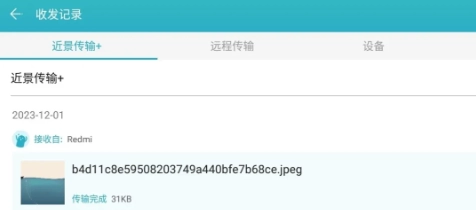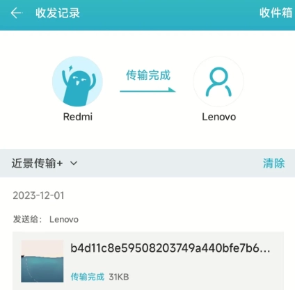 断开连接后,接收端会回到主界面,此时在“收发记录”里就能看到刚才传输的文件了。