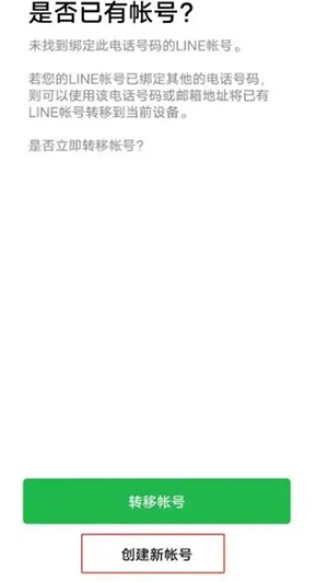 4、系统可能会告知您:“未找到绑定此电话号码的LINE账号”,这时请点击最下方的“创建新账号”。这表示您的手机号码尚未与任何LINE账户关联,您可以开始新账户的创建过程。