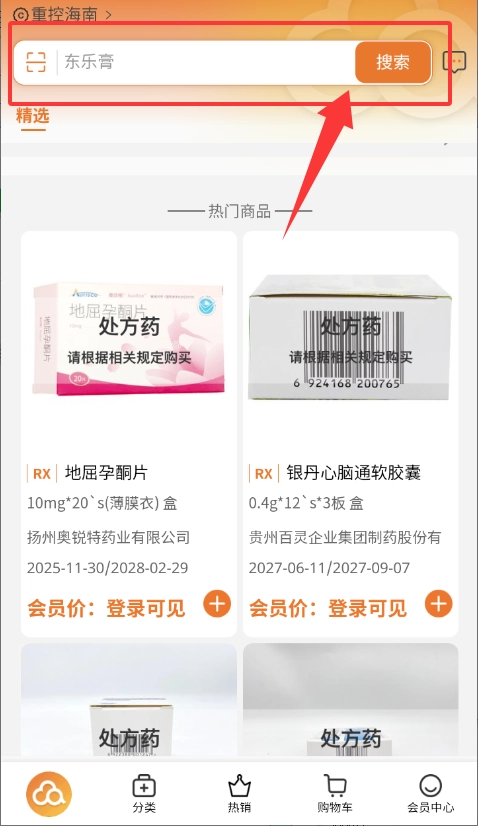 3、在搜索框中输入药品名称,接着点击搜索按钮,即可执行查询操作。
