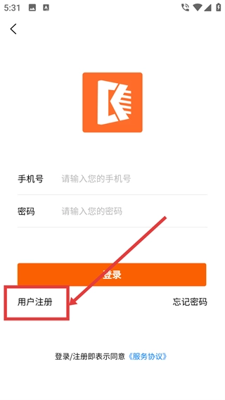 3、在登录界面,要是还没有账号,点击【用户注册】按钮,就会跳转到注册页面,以便填写账号的相关信息。