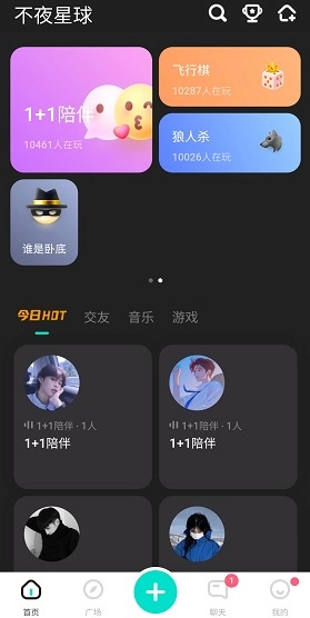 不夜星球为用户提供丰富的交友玩法,让用户可以在平台中结识更多陌生人,在软件中用户可以匿名进行游玩,你可以在平台中结识超多有趣的陌生人,更有超多的玩法,让用户可以在平台中获得更多的乐趣,轻松将自己心事解决,遇到你心仪的另一半。
