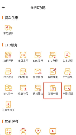找到【ETC服务】,选择【注销申请】