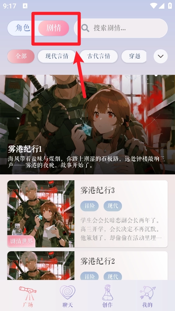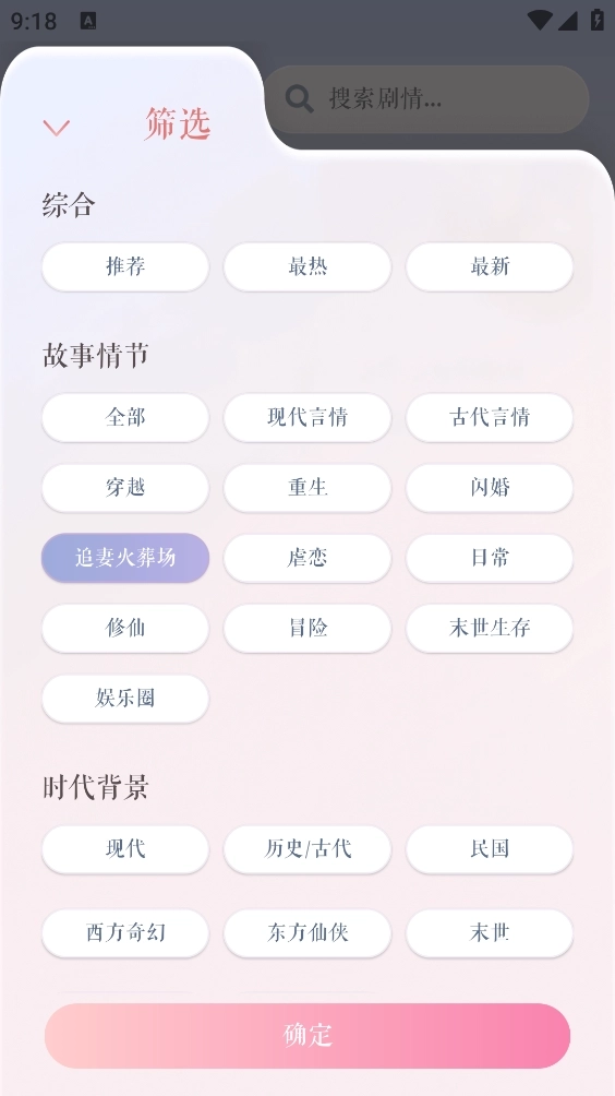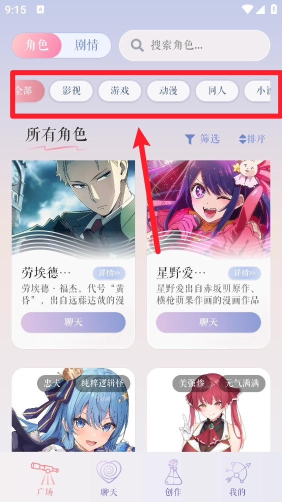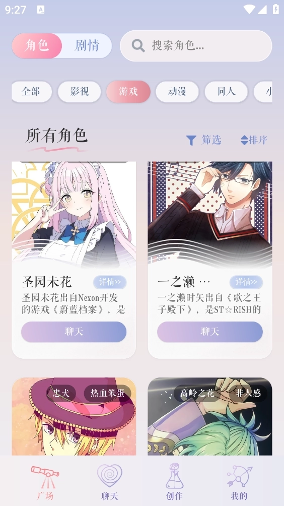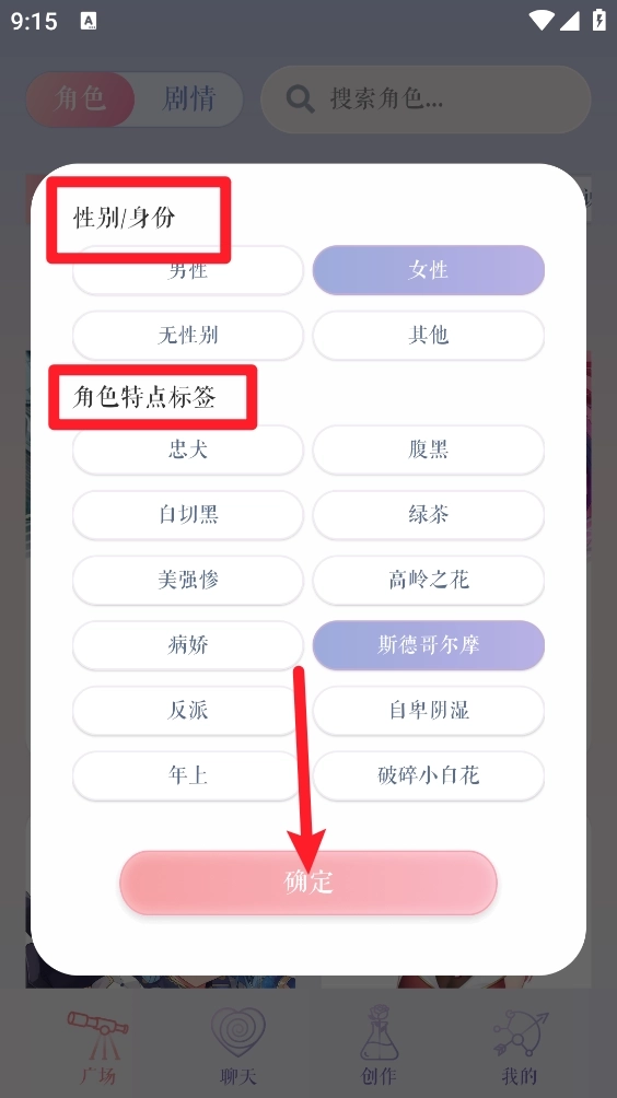 5、剧情板块同样支持筛选功能,完成筛选操作后点击“确定”按钮,最后打开需要的角色进入就能开启聊天了。