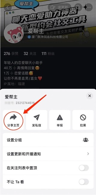 2、点击【分享主页】按钮。