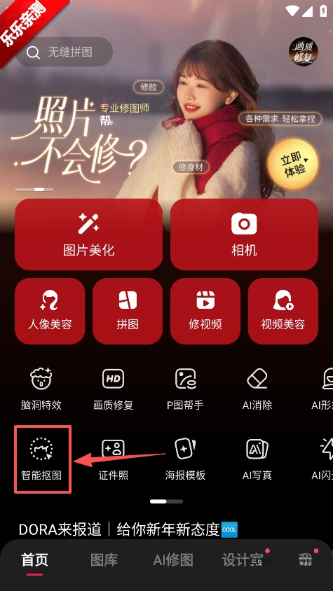 打开美图秀秀免会员版本,挑选需要压缩的图片来进行编辑操作。