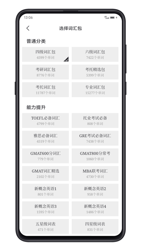 2、进入单词界面:在主界面里找到“单词”选项并点击,即可进入单词界面。