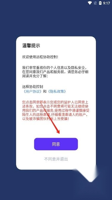 2. 阅读并同意远程协助控制的用户协议
