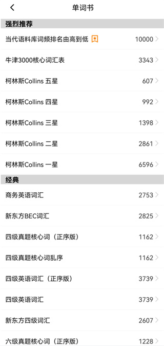 3. 在单词书页面,可依据自身需求挑选想要学习的单词书籍。