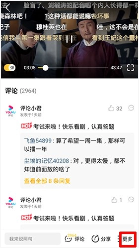 在全屏模式下按下【...】按钮,会弹出【分享】、【缓存】、【收藏】这些功能选项。