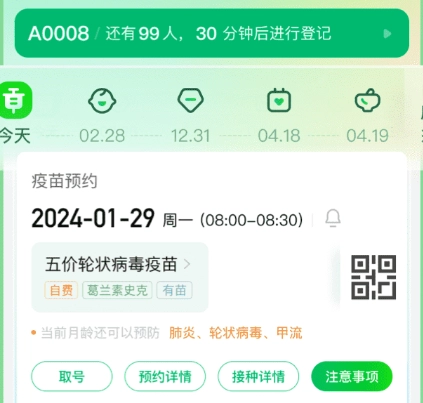 1. 自主预约疫苗接种时段:宝宝接种疫苗不必再长时间等候与排队。