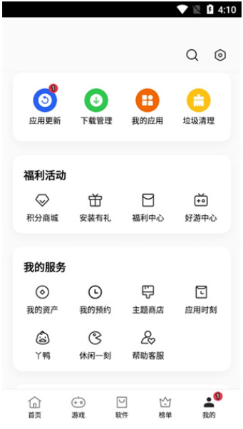 在我的板块里,最值得一说的便是各类福利活动,像积分商城、安装有礼、福利中心、好游中心之类的都包含在内,用户要是碰到疑问还能咨询客服,考虑得十分周到。