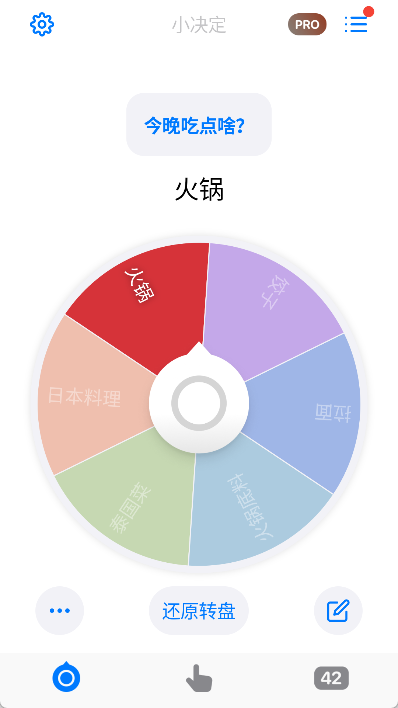 2. 一键决策:轻触屏幕,转动轮盘,就能马上得到决策结果。