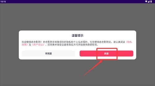 1、打开软件后仔细阅读温馨提示,确认内容无误后点击“同意”按钮,即可进入应用界面。