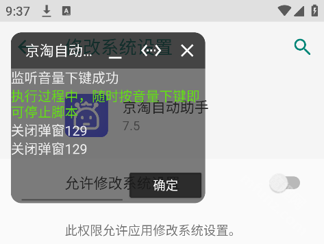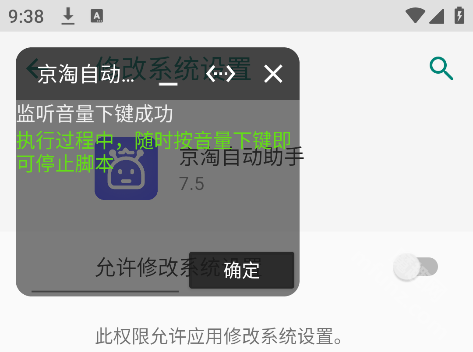 3.启动软件脚本后,软件会自动把您手机的系统声音调整到最小,这样能避免您工作时被发现的尴尬情况。