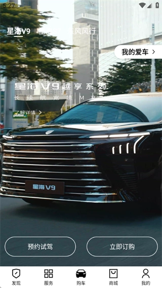1、进入就能看到最新款车型,可以预约试驾或订购;