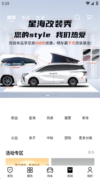 4、商城内陈列着丰富多样的汽车周边产品,您可以随心挑选;同时还有众多精彩活动,期待您的参与。