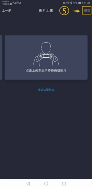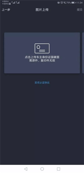 6、请按顺序上传车主身份证国徽面、车主身份证人像面以及车主手持身份证的照片,随后点击【提交】按钮,即可完成实名认证的申请流程。