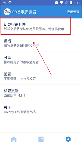 2、点击“卸载谷歌套件”