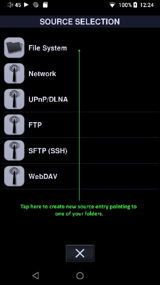 1、通过App设置->媒体库或Sources访问SourceSelection,然后使用[+]打开SourcesSelection,点击文件系统