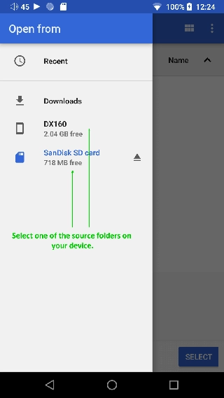 3、操作系统将显示允许选择文件夹并授予Neutron访问权限的对话框,您可以通过进入文件夹并按下底部的选择按钮来选择内部存储或SD