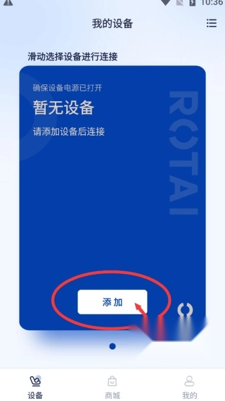 1.先并安装荣泰智能,进入主页面后首先添加设备。