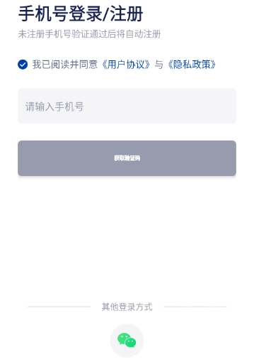 3.最后用手机号及验证码或用微信登录即可。