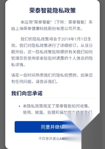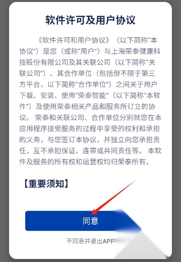 1.安装并打开荣泰智能,点击同意并继续