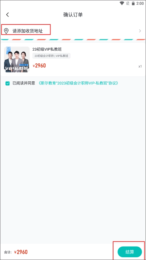 4、填写你的收货地址,并进行课程金额结算操作即可购买成功。