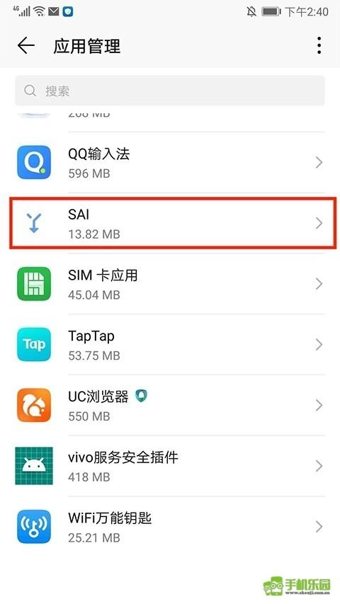 2、进入应用管理界面,找到并选择【SAI】,