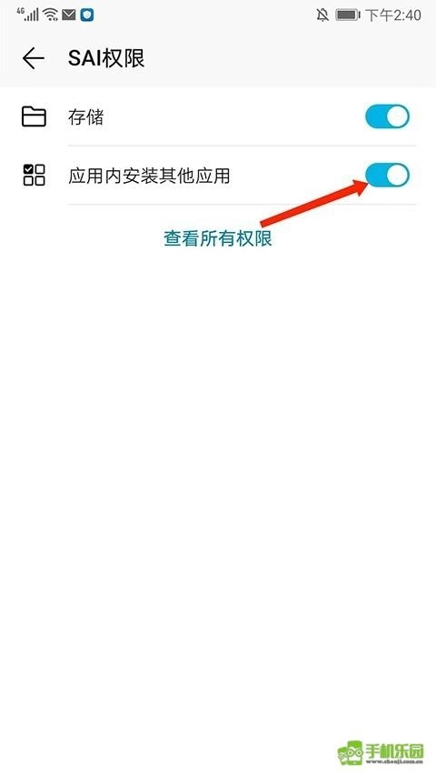 3、进入权限设置界面,打开【应用内安装其他应用】,