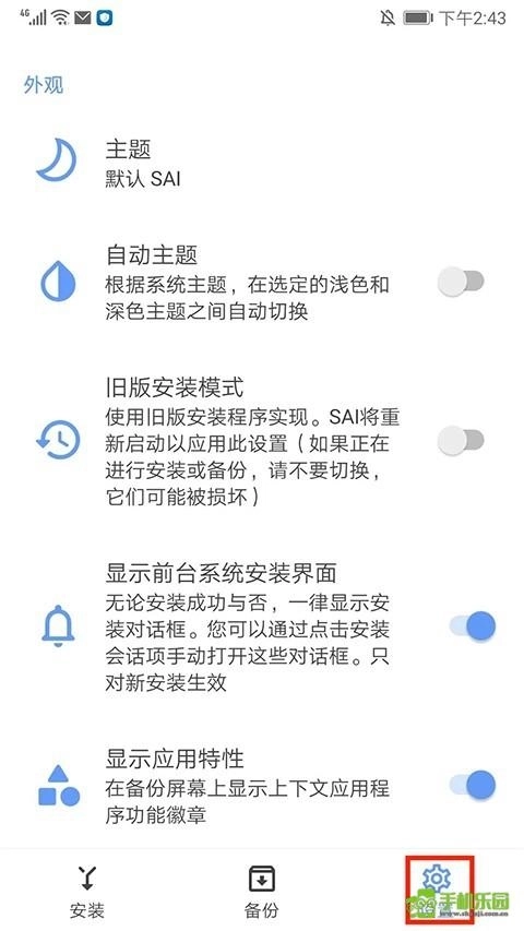 9、进入设置界面,可进行主题、界面、安装等项目的设置,以上就是SAI安装器的使用方法了。