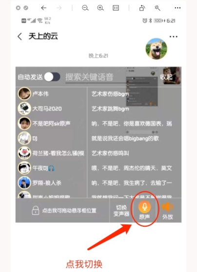 1、点击悬浮窗中的“原声”。
