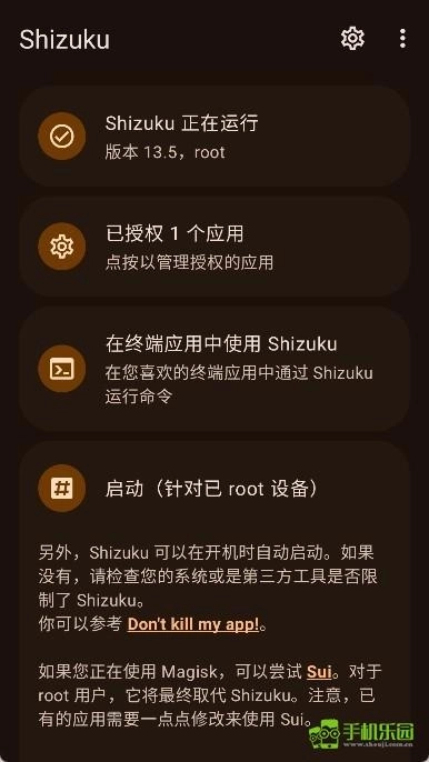 2、如果手机没有root,可以选择并激活Shizuku工具。