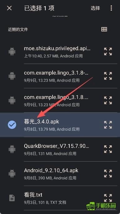 5、在弹出的文件选择器中找到并选择需要安装的APK文件。