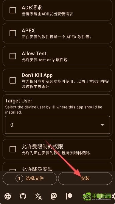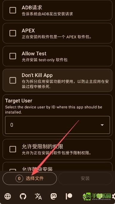 4、打开Install with Options软件后,点击底部的“选择文件”选项。