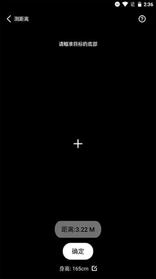 3、把十字准星的中心对准待测物体的顶部,点击“确定”,测量结果将自动显示。