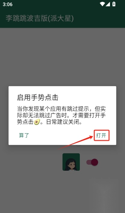 3. 点击李跳跳的关闭按钮,在弹出的界面里开启三个功能按钮就可以了。