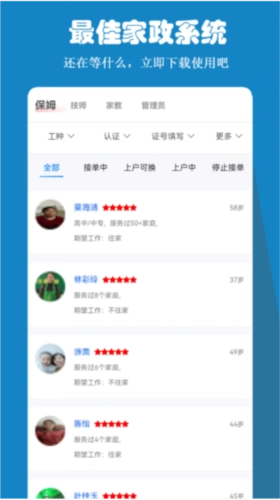 4, 保姆管理: 保姆简历,视频自我介绍,电子合同