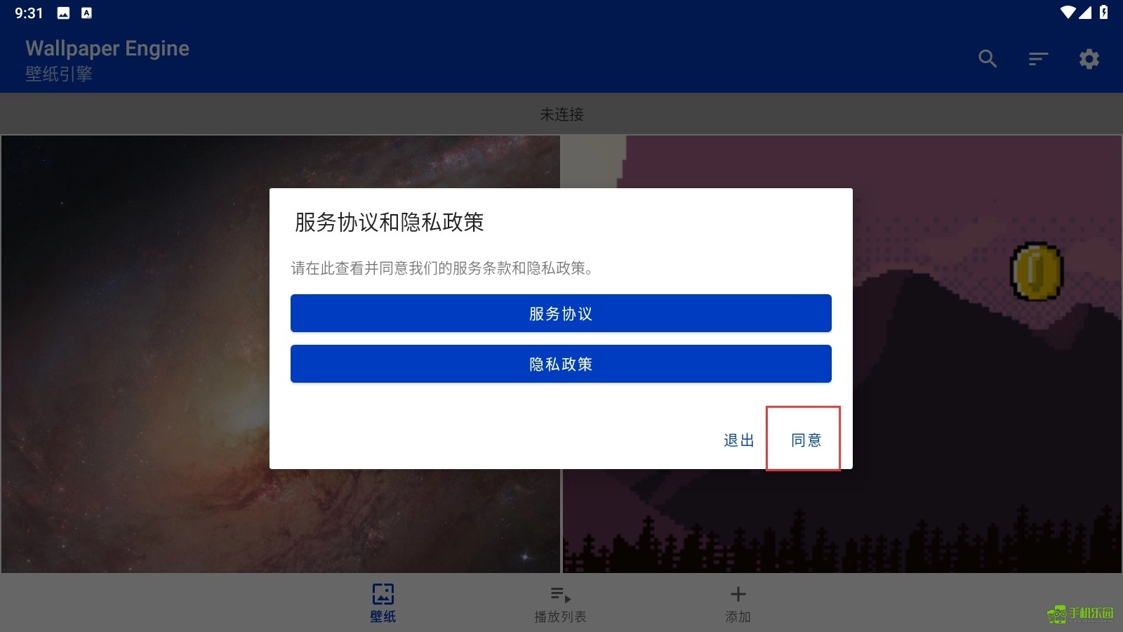 1、首次打开Steam壁纸引擎,查看并点击【同意】服务协议和隐私政策