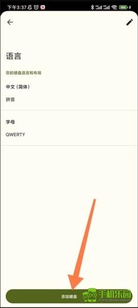2、进入语言界面后,能看到当前已设置使用的2款语言,此时点击最下方的添加键盘按钮即可。
